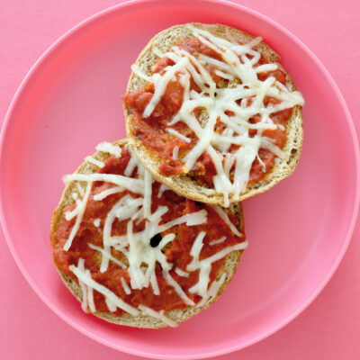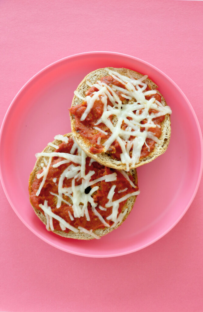 - Add tomato sauce to each bagels and top with cheese