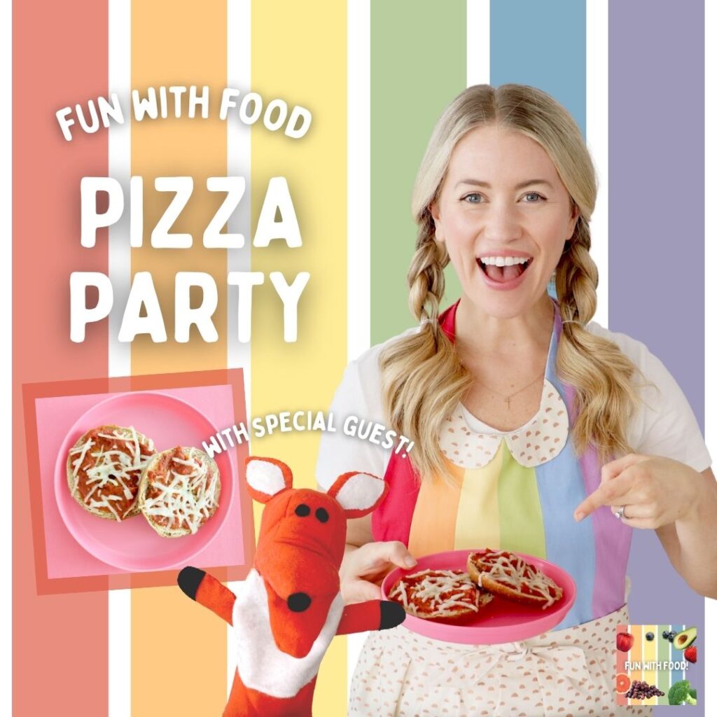 Today we’re celebrating episode 5 of Fun With Food! We’re making Mini Pizza Bagels with special guest Feeling Fox while learning about the feeling of frustration and how to process feelings in a healthy way, the letter T sound, counting, shapes, colors and the health benefits of tomatoes!