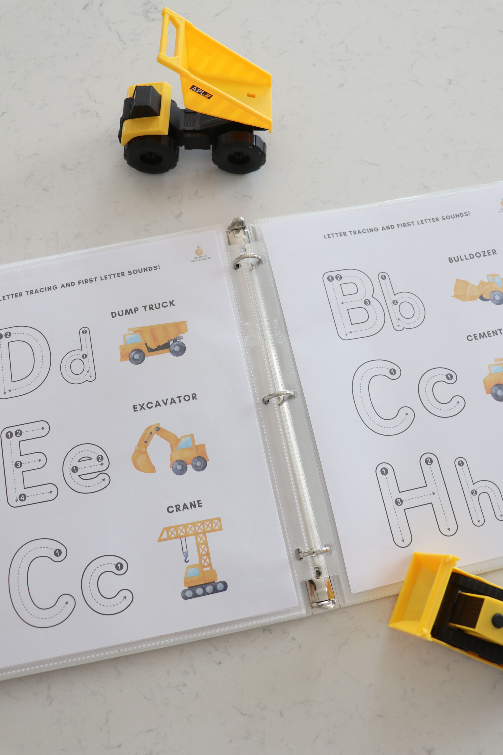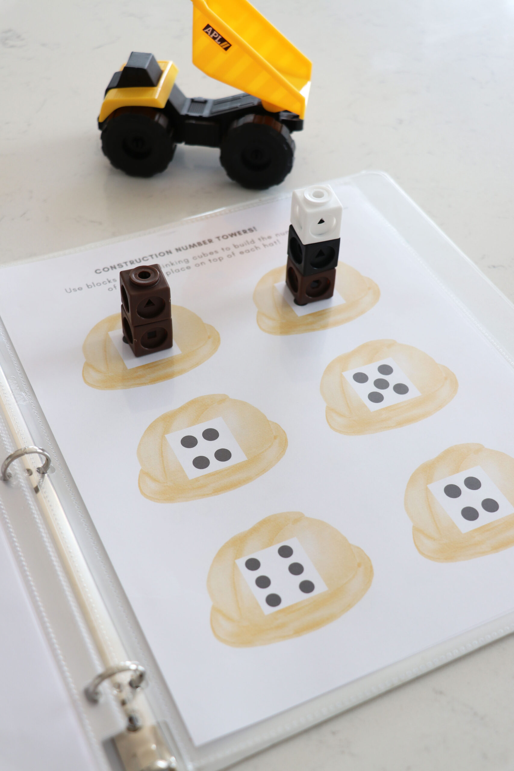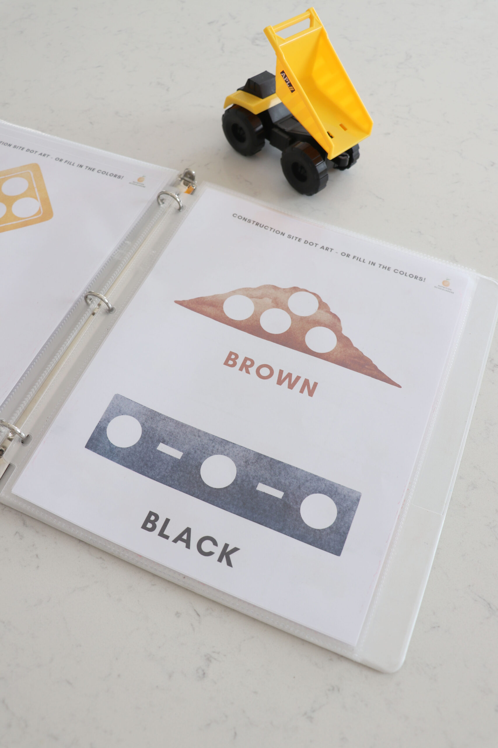 My son who is 3 years old, loves all things construction site! So, I made this busy book for him to enjoy while I do school with his older sister. He is LOVING it and I wanted to share with other families who have a construction site loving kid!