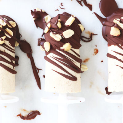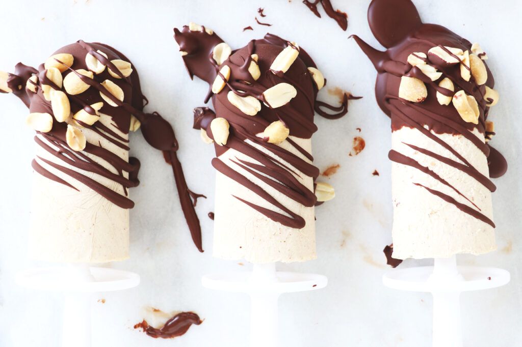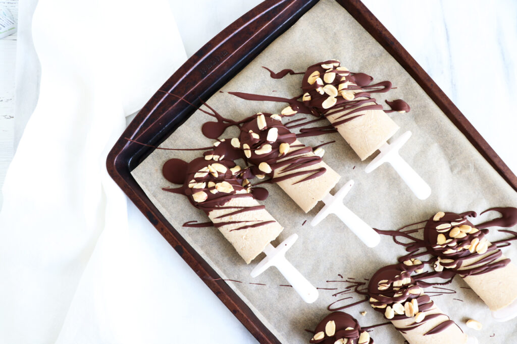- Melt chocolate chips and drizzle over frozen pops, or dunk and sprinkle with peanuts.