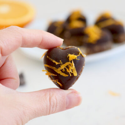 I love the tradition of a box chocolates on Valentine’s Day! Therefore, today’s post is inspired by my love of chocolate and the day of love. We’re sharing how to make these Chocolate Orange Heart Bites which are great anytime of the year and they are especially magical on Valentine’s Day! These bites are made with simple, wholesome ingredients and are really easy to make. Whether you make them for yourself or for a loved one – they are a must try! Happy chocolate treat making and happy day of celebrating all things lovely!