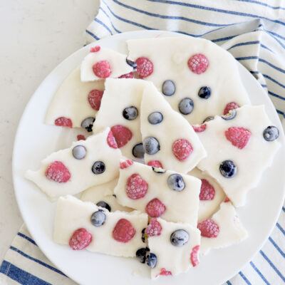 Hi Friends! I love this red, white and blue yogurt bark for a simple and cool breakfast on hot a summer day or afternoon snack! This dairy-free breakfast recipe is easy to make and also nutritious! Packed with protein, vitamins, minerals, fiber and antioxidants you’ll want to make this recipe again and again this summer!