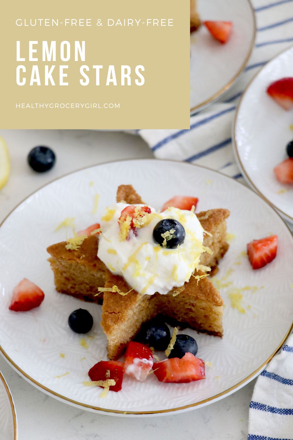 4th of July is full of incredible time together with family and eating delicious food. Whether you grill out, get take out or make some of your favorite recipes, there is always room for amazing snacks and desserts! This Lemon Cake Stars recipe are the perfect treat for your festivities. This cake is gluten-free, dairy-free and made with simple ingredients that the whole family can enjoy!