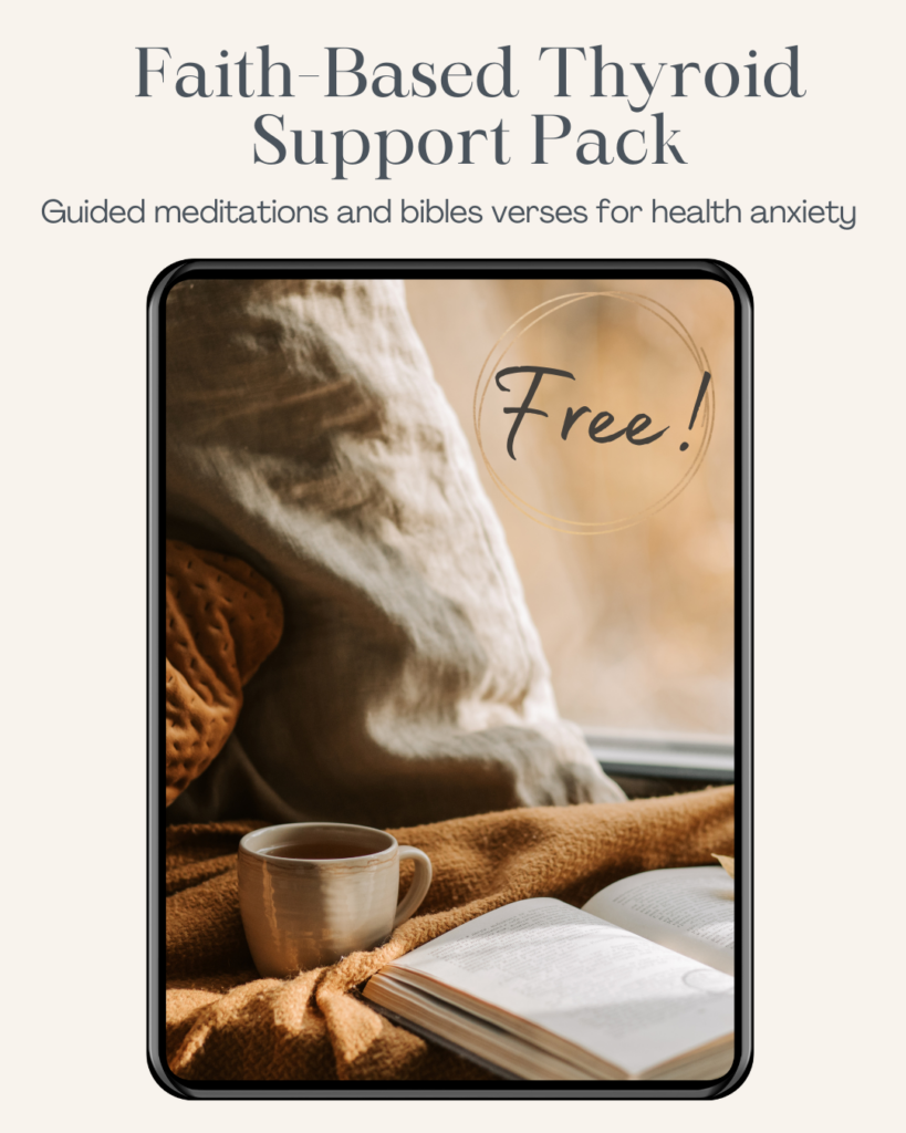 This free Faith-Based Thyroid Support Pack includes 3 faith-based guided meditations as well as a list of bible verses that focus on giving God your stress, worry and health anxiety. My faith has been a key part of my healing and health journey. For those interested, I hope this resource blesses you, as it has been a blessing for me!