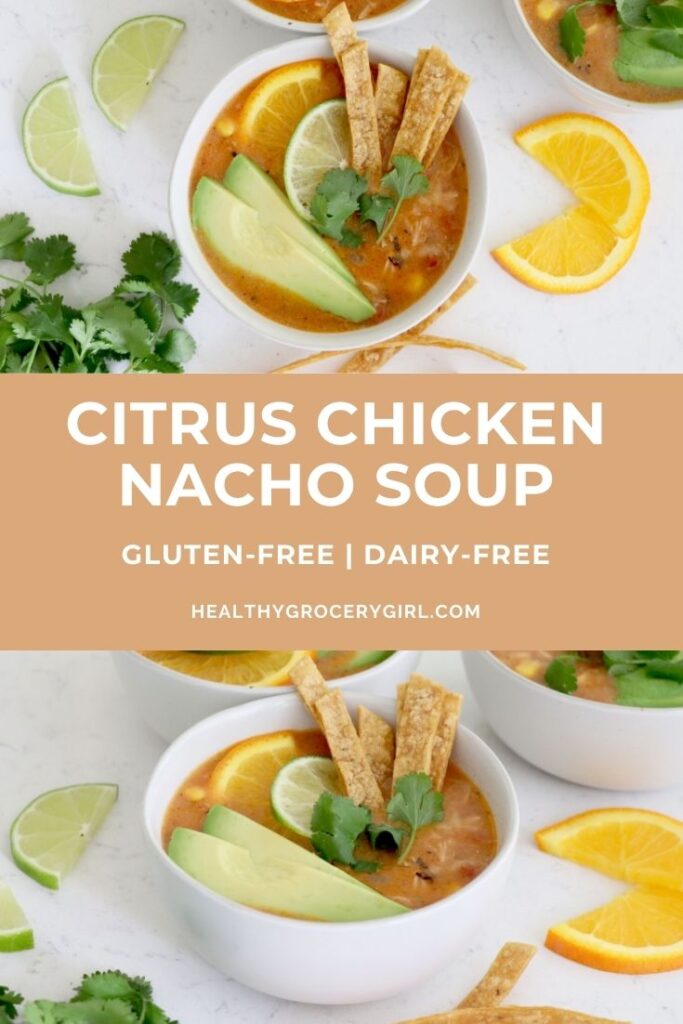 It’s October, which means cooler nights and warm comforting meals! I can’t wait to share with you this flavorful and healthy Citrus Chicken Nacho Soup! This soup can be made in less than 30 minutes making it the perfect weeknight meal to satisfy the entire family! Made with fresh and protein packed ingredients such as black beans and chicken, so no one will be left hungry.