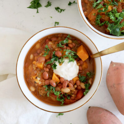 When the weather turns cooler, my favorite types of recipes to make are soups and chilis. I love how they make the home smell amazing and having plentiful leftovers for easy meals throughout the week. Chili is also a wonderful comfort food that can be packed with so much goodness from plant-based protein such as beans, to vegetables, herbs, spices and more.