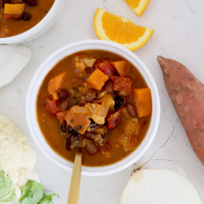 This hearty and healthy flavorful Orange Sweet Potato Chili is the perfect way to cozy up on a fall evening! The best part is that it is made with simple ingredients and done in the instant pot, for a quick weeknight meal.
