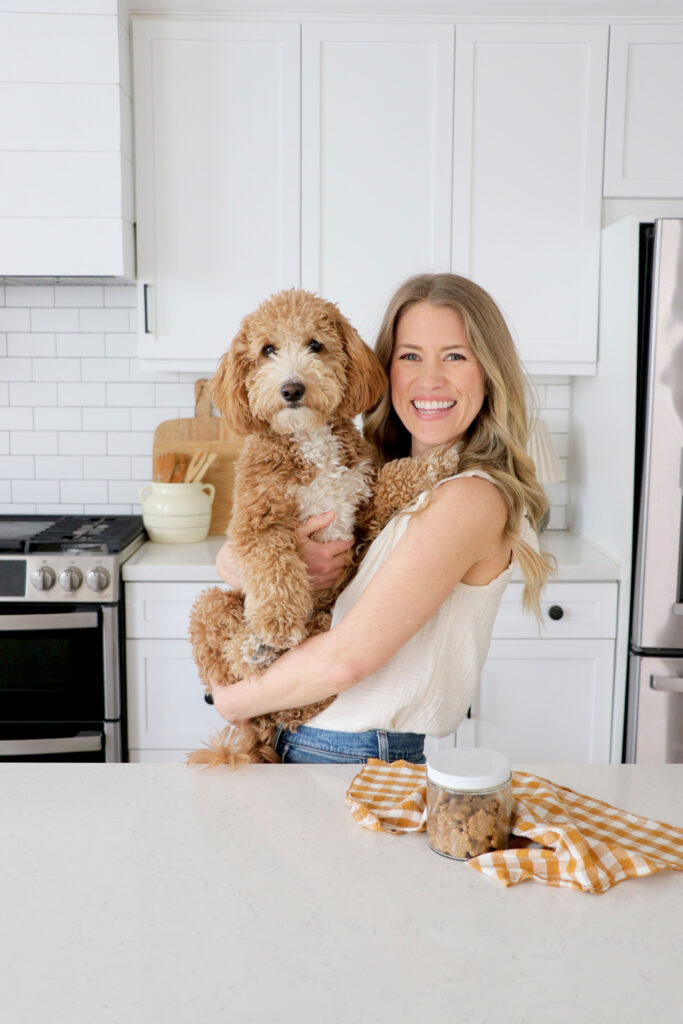 Then Ta Da! The cutest, most delicious homemade dog treats are made with simple wholesome ingredients that my dog loves, but my kids also love them too because they’re made with just oats, banana, peanut butter and a little bit of water.