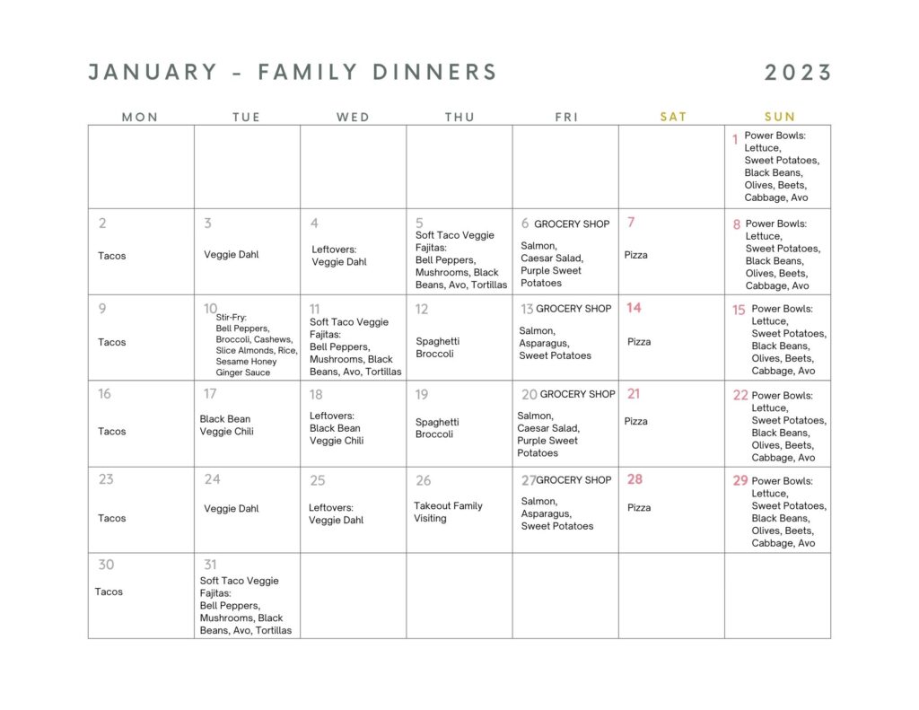 If you follow me on Instagram, you know we’ve been chatting about grocery budgets and meal planning! I shared with you that my goal this year is to grocery shop once a week and to meal plan for the entire month at once to help organize my shopping. Below is our January Family Dinners Meal Plan, I hope it gives your inspiration or ideas for what to cook for your family this month!