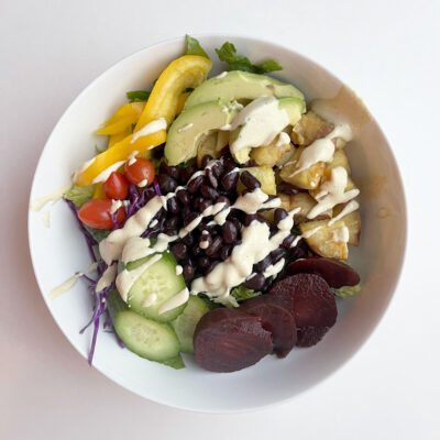 - Build your Power Bowl and top with dressing of choice, my go-to is our Cashew Caesar!