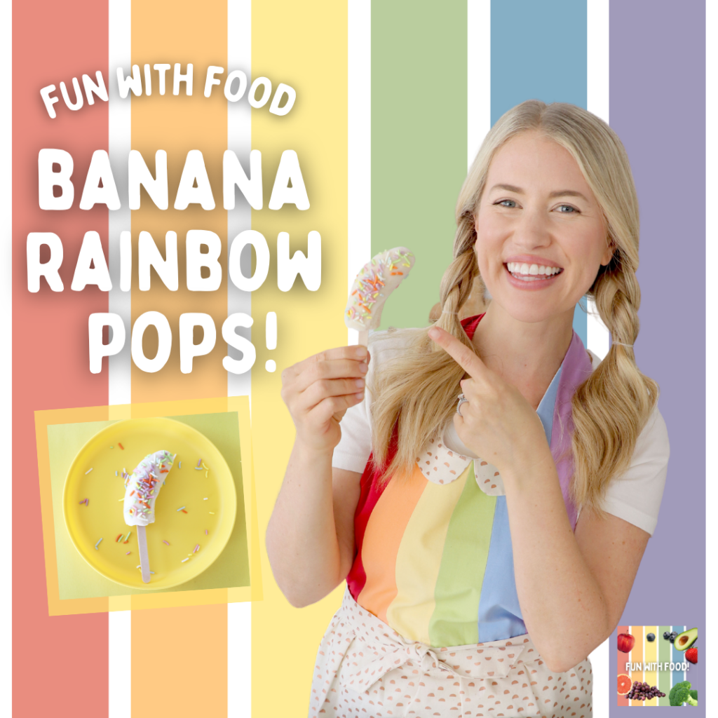 Hello Friend! I am thrilled to share Episode 1 of Fun With Food! Today we are making these colorful and fun.. Banana Rainbow Pops! This healthy kid-friendly recipe is simple to make and kids can help create this snack too! Click play to watch the full episode below and then scroll for more information about this recipe!