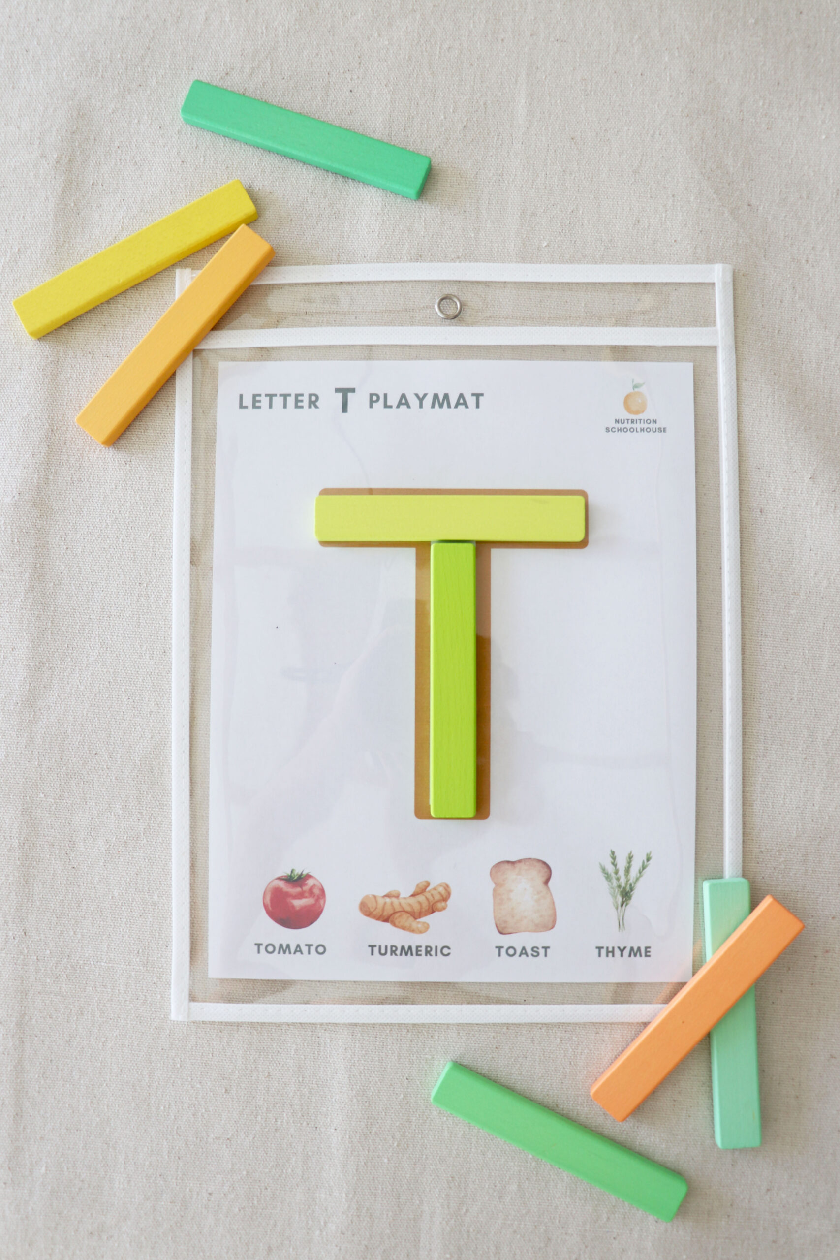 This Nutrition Schoolhouse pack includes 52 letter activity sheets, uppercase and lowercase. Each Playmat includes a large letter and then 4 fruits, veggies or other nourishing foods that start with the same letter! For example… A is for Avocado, Apple, Almonds and Artichoke! You’ll see food favorites and learn about new foods too!