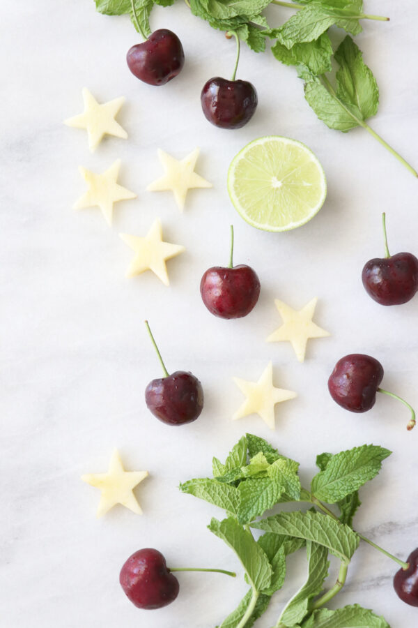 This recipe is really easy to adapt if you want to yield a larger salad! Feel free to add as much or little apples, cherries, blueberries and mint as you like!