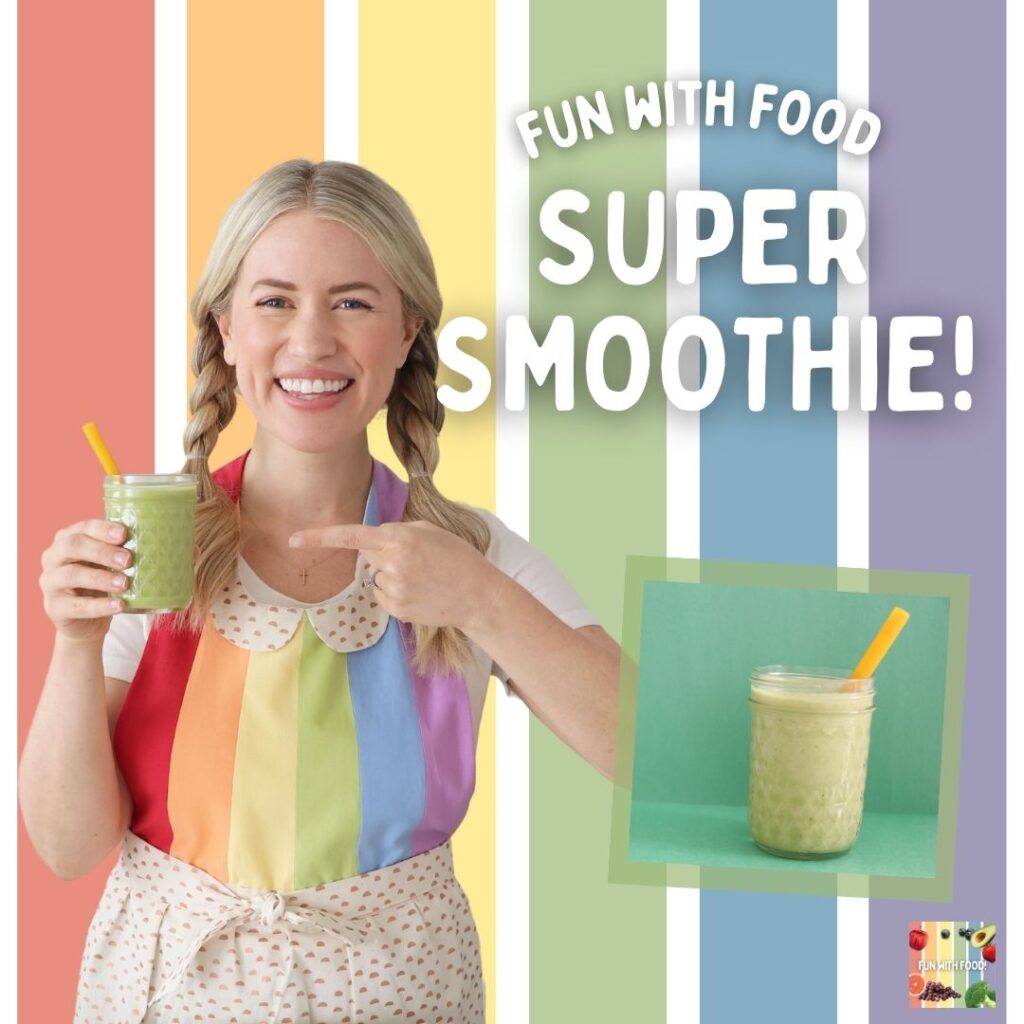 If you’re looking for learning videos for kids that are quality, wholesome and fun I recommend watching our new show, Fun With Food! Fun With Food is an Educational Cooking Show for Kids. In each episode, we make a recipe or go on a food adventure while learning about letters, numbers, colors, shapes, nutrition, feelings and more. Fun with Food is created and hosted by Megan Roosevelt, Registered Dietitian Nutritionist and mom of 2.