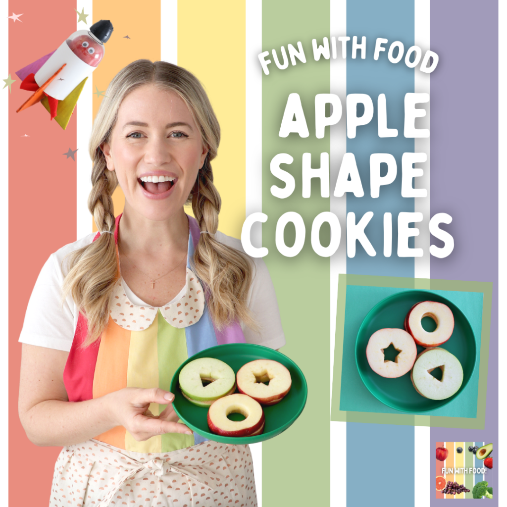 Today we’re celebrating episode 4 of Fun With Food! We’re making Apple Shape Cookies while learning about the letter A sound, counting, colors, shapes, our 5 senses and the health benefits of apples. Plus, this time in the big cooking pot we have an “out-of-this-world” surprise!